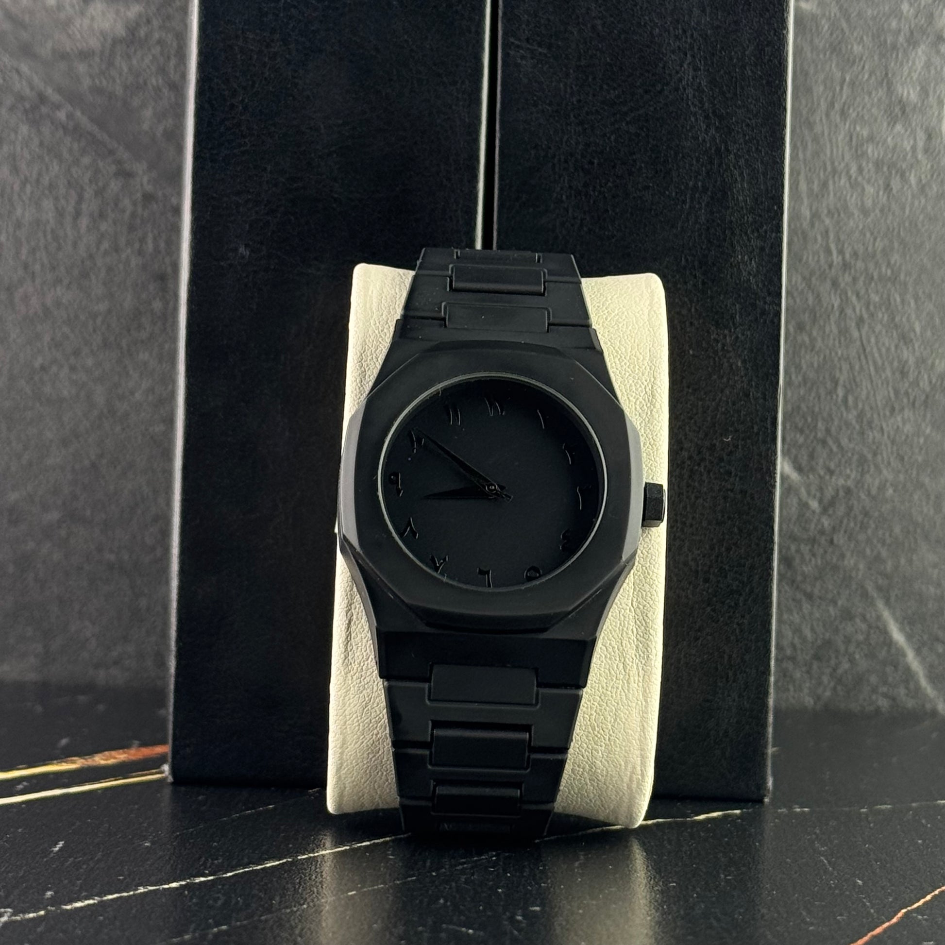 Aura Watch – Sleek matte black design with minimalist dial for timeless class.